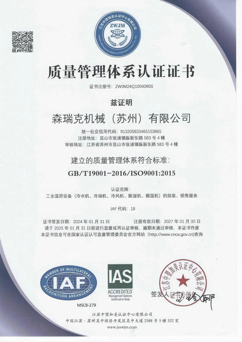 森瑞克機(jī)械(蘇州)有限公司(簡稱:SENRICK)是一家中外合作性企業(yè),引進(jìn)技術(shù),專注于工業(yè)制冷設(shè)備,工業(yè)溫控設(shè)備,非標(biāo)制冷設(shè)備,集激光,化工,真空設(shè)備輔機(jī)等集研發(fā)、生產(chǎn)、銷售、服務(wù)于一體的的現(xiàn)代化科技企業(yè)。公司擁有完善的制造設(shè)備,先進(jìn)的檢測系統(tǒng),獨(dú)立的加工、生產(chǎn)工藝,一支開拓創(chuàng)新專業(yè)有素的技術(shù)人才團(tuán)隊(duì),以及全面的質(zhì)量控制體系,為產(chǎn)品質(zhì)量的不斷優(yōu)化提供了強(qiáng)大的保障,以確保滿足不同市場的各種需求。經(jīng)過多年的努力企業(yè)相繼研發(fā)生產(chǎn)出了工業(yè)冷水機(jī),工業(yè)冷風(fēng)機(jī),工業(yè)冷油機(jī),工業(yè)機(jī),低溫冷水機(jī),低溫冷風(fēng)機(jī),低溫冷油機(jī),螺桿式冷水機(jī)...